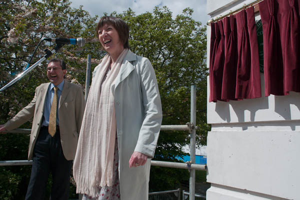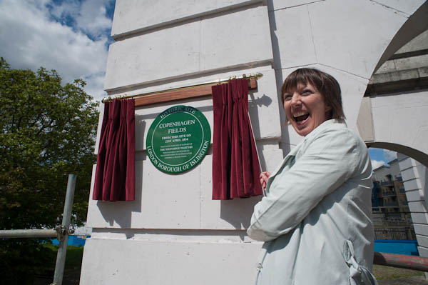 And then pulls the cord to reveal it. The text on this London Borough of Islington Historic Site plaque reads: