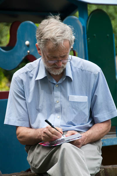 Jeremy Corbyn makes a few notes