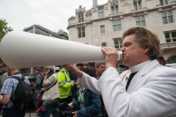 ![]() Reverend Hilly from the New York 'Church of Life After Shopping' joined in the march |