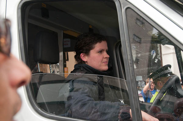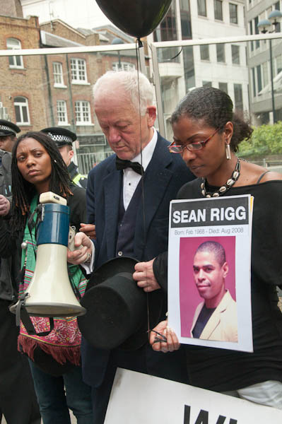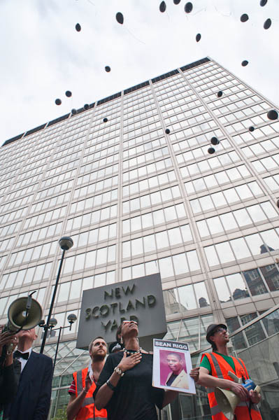 ![]() Chis Knight speaks with Sean Rigg's sisters on each side of him. A police officer stands impassive. ![]() ![]() Suddenly the whole mood changes as an officer reads out a warning from her chief over the loudspeakers ![]() interrupting the ceremony. For a few moments an angry crowd looks likely to attack the van - and it does seem a very provocative action in what to this point had been a well ordered and restrained - although angry - demonstration.against police violence. It's hard to understand why police took this action at this time - unless they wanted to provoke a riot. ![]() Fortunately the moment passes and the release of baloons continues ![]() ![]() |