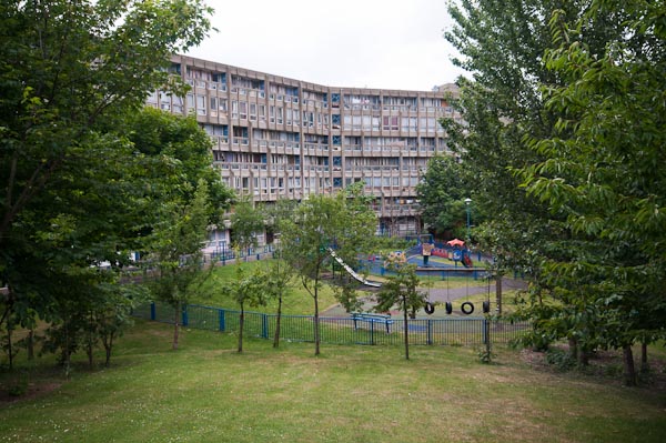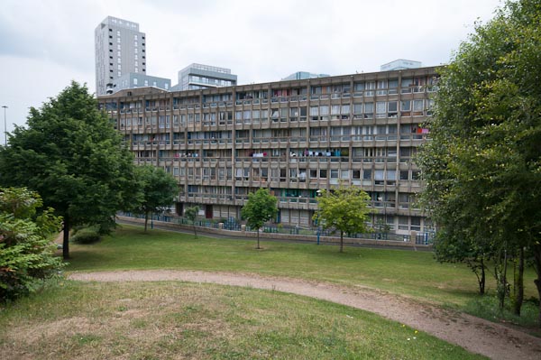 Despite the Blackwall Tunnel approach next door it is very quiet inside Robin Hood Gardens