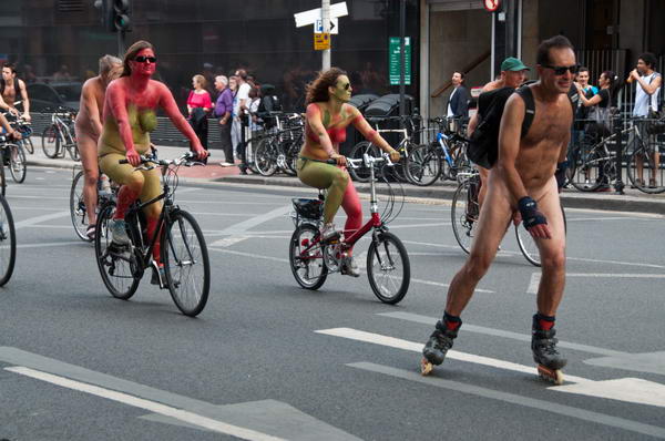 World Naked Bike Ride - LondonSt Giles, London. Sat June 13 2009Please do not link directly to this page. Use the permalink: http://mylondondiary.co.uk/2009/06/jun.htm#wnbr which leads to the start of this story and a warning that these pages contain images of men and women without clothes, and that anyone who might be offended should not view them. If you have come to this page by accident and wish to leave immediately, click here.