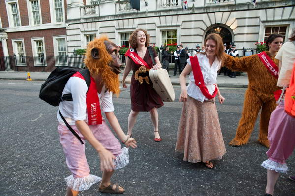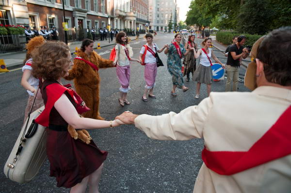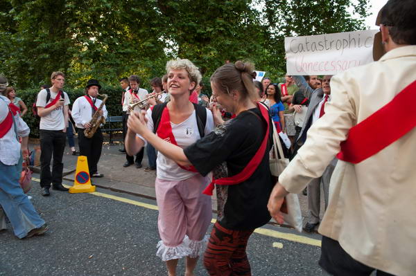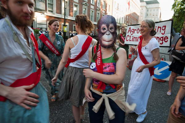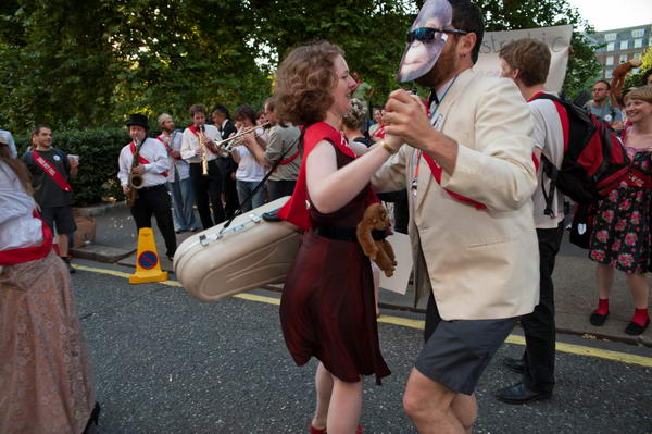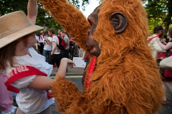 Soon others joined them and half the street was full of people (and orangutans) dancing