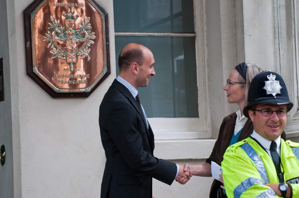 London Protest Against Calais ClearancesFrench Embassy, Albert Gate, London. Monday 20 July, 2009