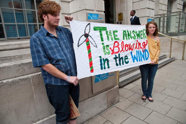 The answer is blowing in the wind - and a small gust put in an appearance for this photo at the Dept of Energy & Climate Change