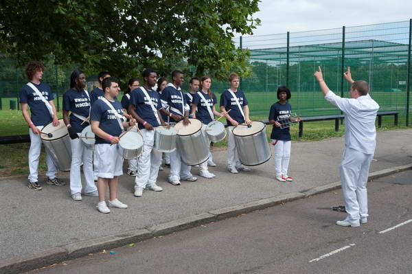 The street band 'Uniao da Mocidade' (Union of Youth, a Rio-style samba band.