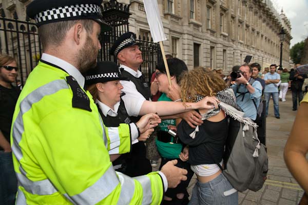 When after a few minutes the police looked likely to start arresting them, people flooded across the road in support