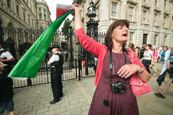 While others chanted . Possibly they could be heard in No 10 - while the other side of the road is too far distant