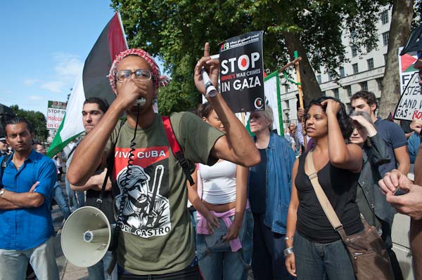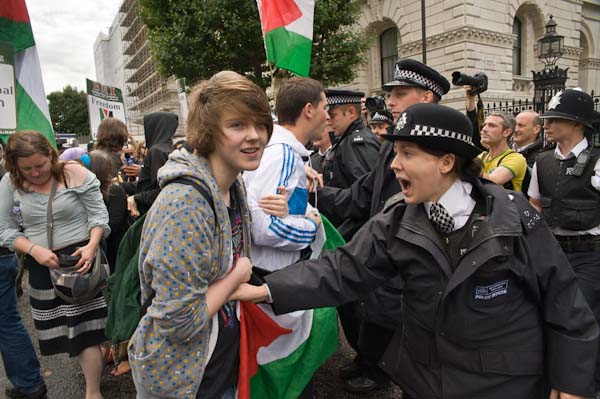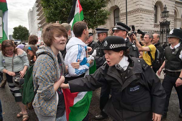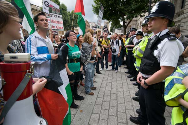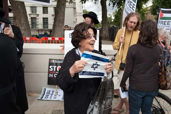 One elderly lady was confused by their presence and joined in the demonstration with an Israeli flag. People tried to explain to her, then simply ignored her. After about half an hour a policeman insisted she put her flag away in her bag.