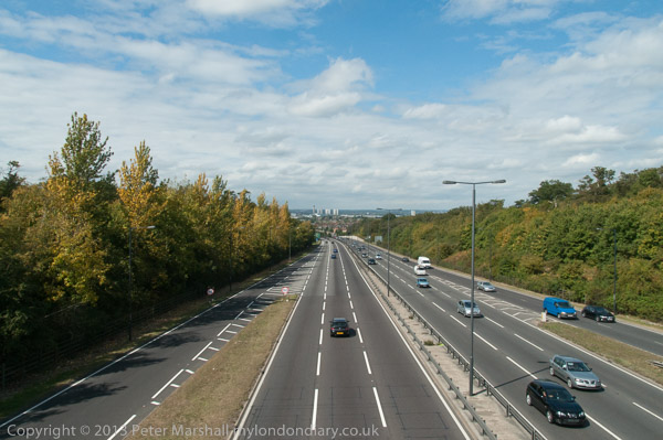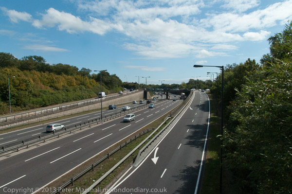 A bridge takes the walk across the North Circular (Southend Rd)
