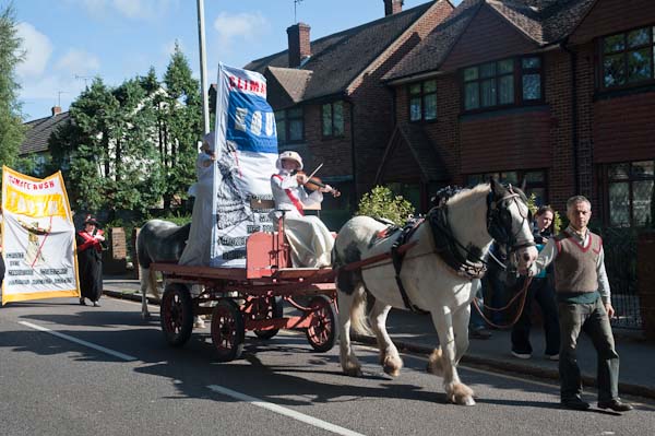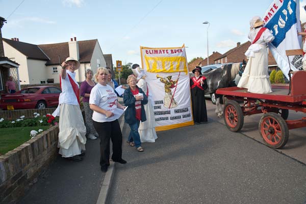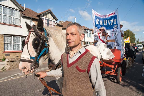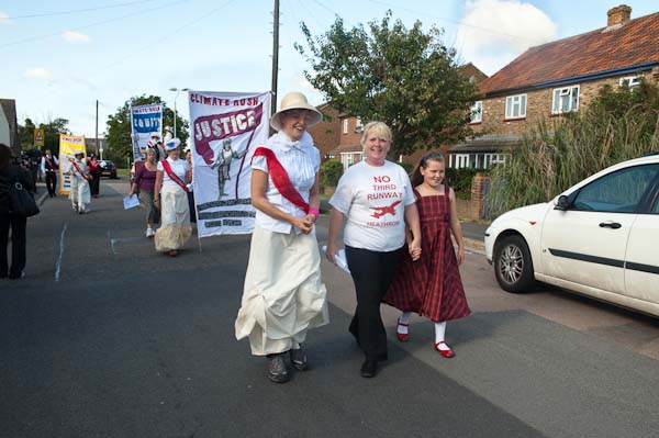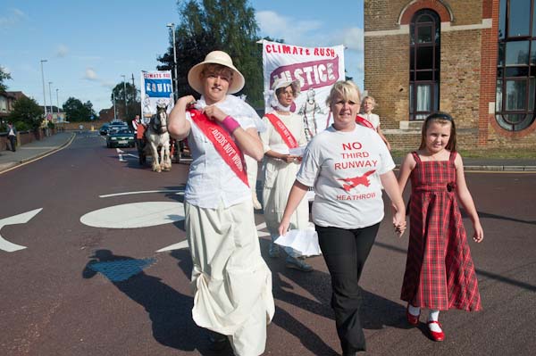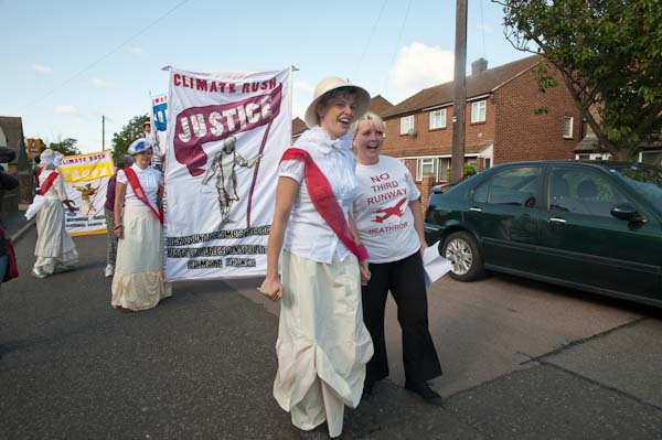 Tamsin Omond looks as if she is about to lose her "Deeds Not Words" sash