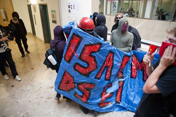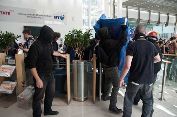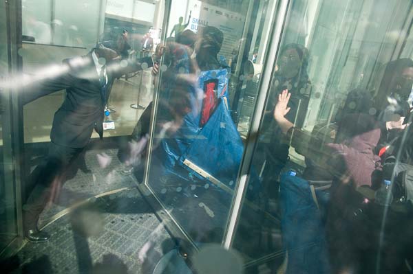 ![]() But fails as the first marchers break through and a second group start to push |