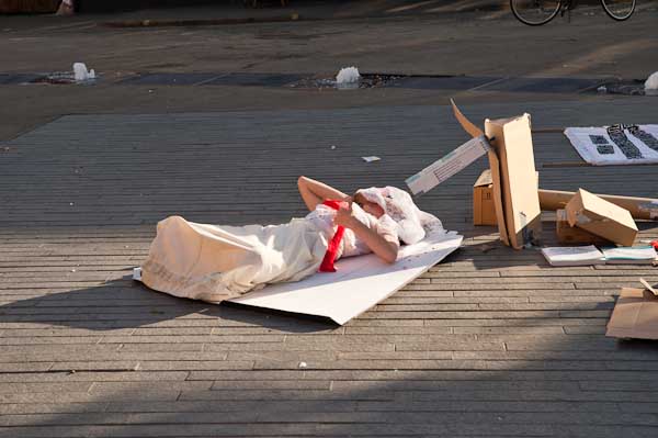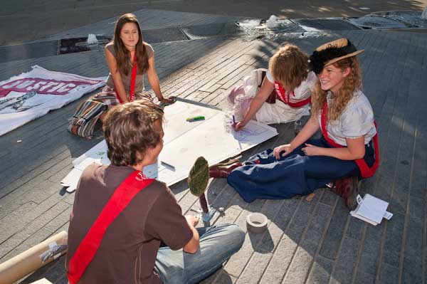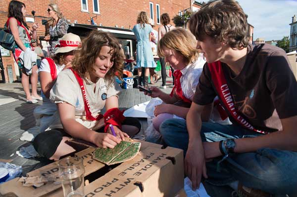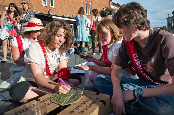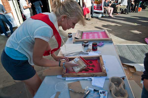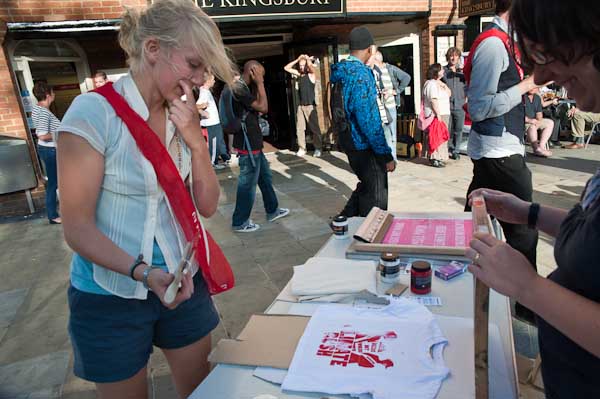 Printing a 'Climate Rush' t-shirt using a silk screen
