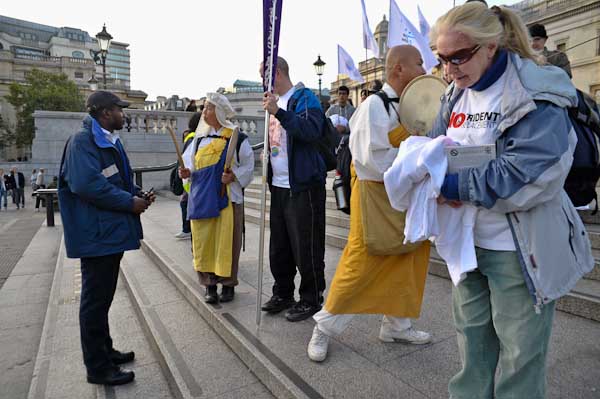 Who stopped the peace march, saying it could not walk through Trafalgar Square