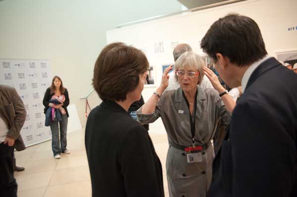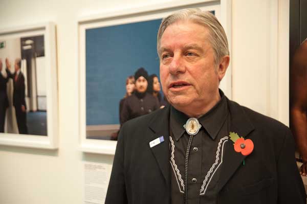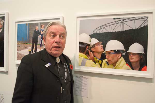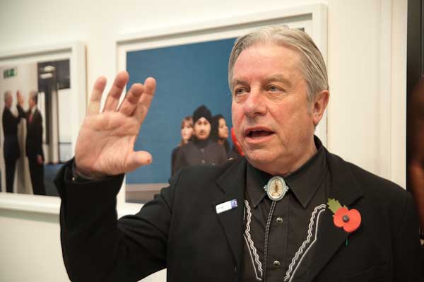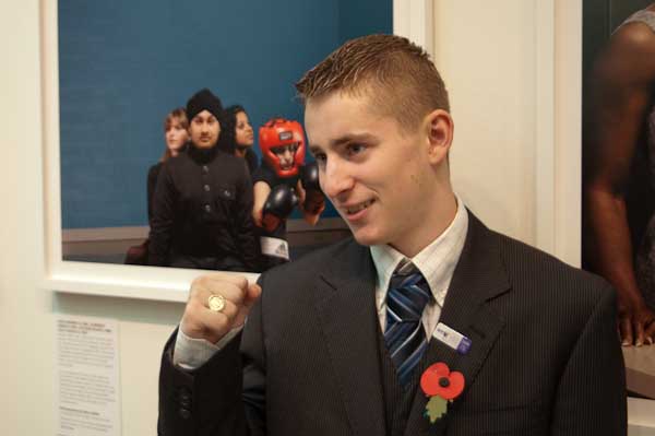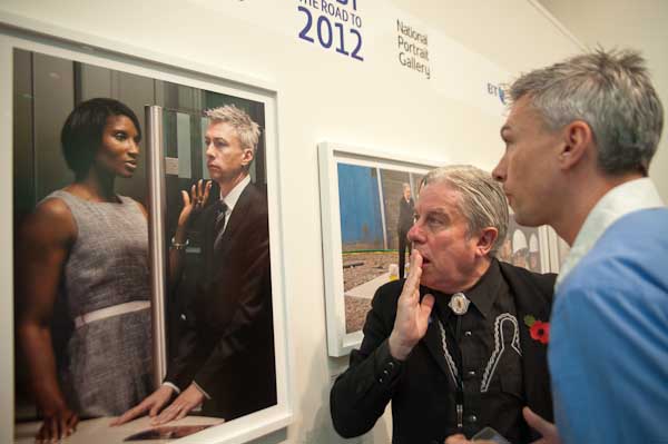 Jonathan Edwards photographs Brian Griffin in front of his picture with and Denise Lewis