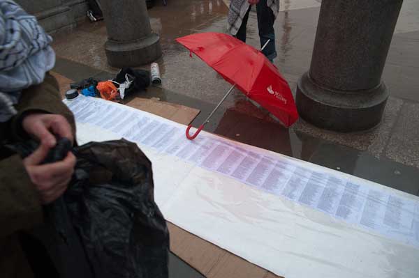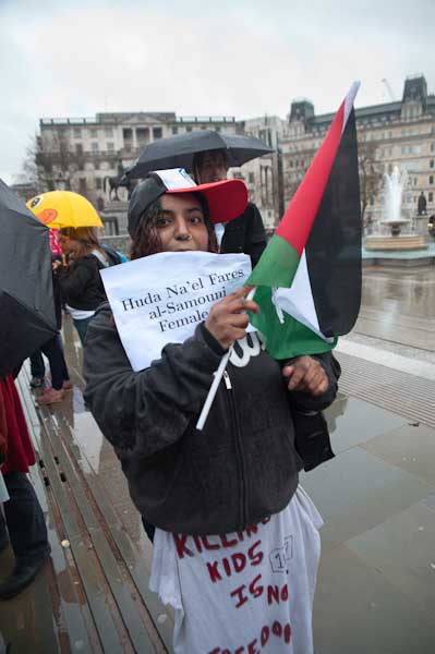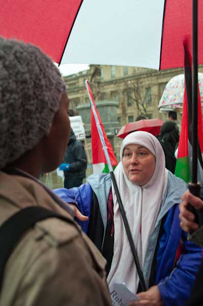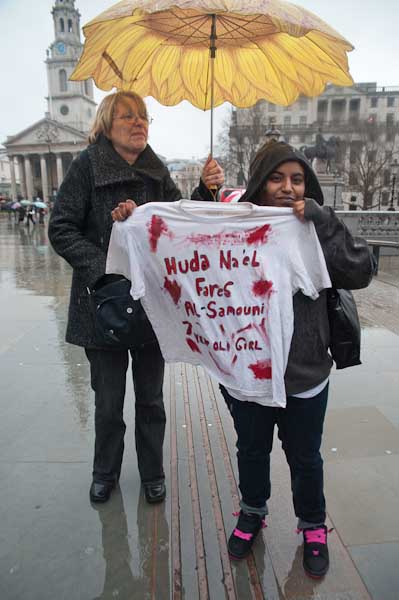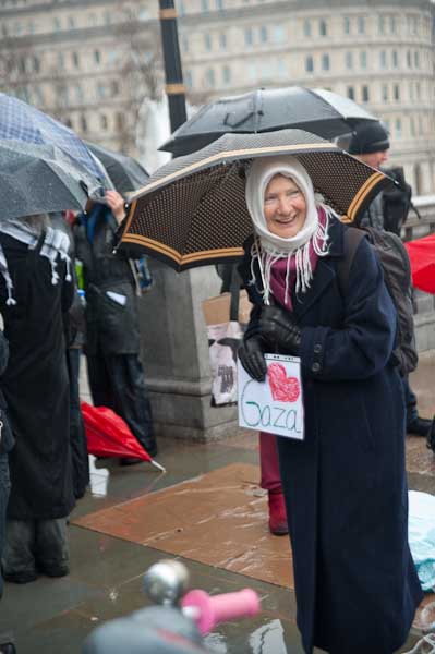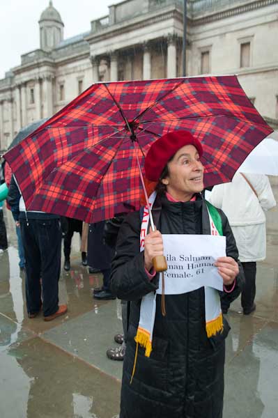 It was pouring in rafalgar Square as the demonstration assembled, and I waited for a while with others on the National Gallery steps