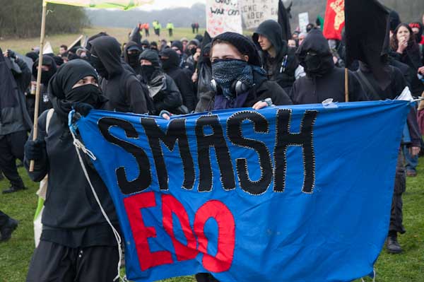 At the back of the EDO factory site they were challenged by police with dogs, who told them they would be