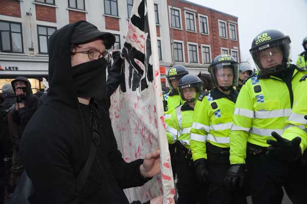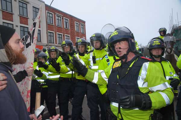 Eventually the police line retreated, but then broke down where the road widened and poeple flooded through