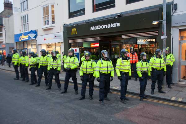 As I left, police were taking up position outside likely targets including KFC and McDonald's, but I was tired