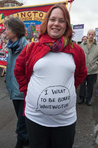 ![]() ![]() Whittington Mum and "the bump" on the march, and right, a young trade union supporter |