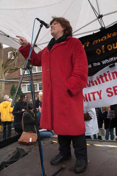 I think the chair of the meeting - above - was Shirley Franklin, Joint Chair of Defend the Whittington Hospital Coalition