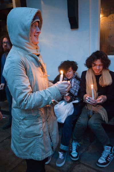 And started to get candles ready for the march, with aluminium foil cake cups to protect hands from dripping wax