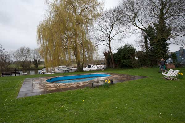 Empty paddling pool by the river