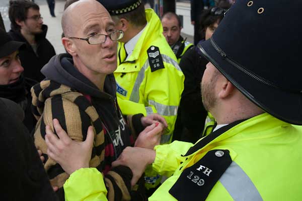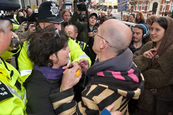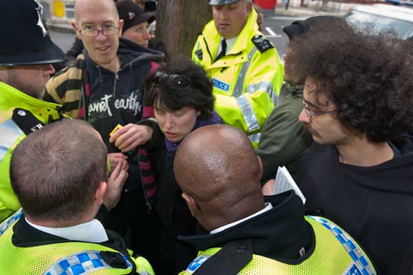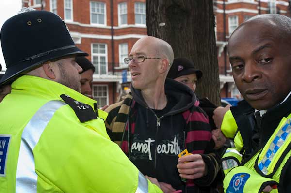 Protesters tell him that the man has not committed any offence