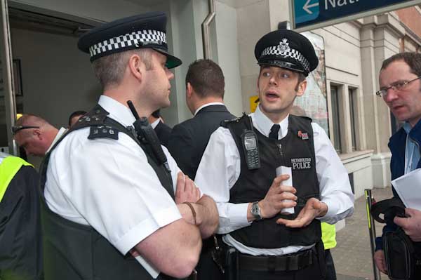 Rather late, this officer handed out these little booklets which are a guide to policing protest