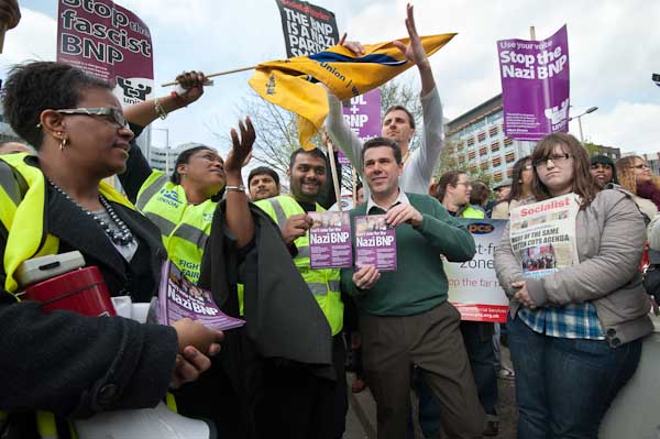 PCS General Secretary Mark Serwotka came to talk to the counter-demonstrators