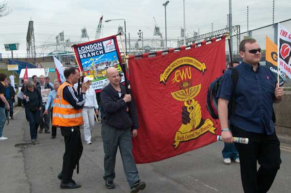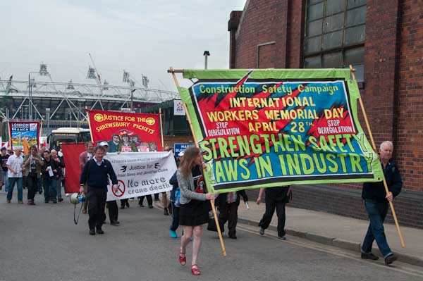 The Olympic stadium and Unite London Construction banner with picture of stadium