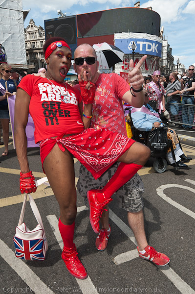 The Gay Liberation Front banner leads the march. Peter Tatchell carries an Outrage placard calling for an