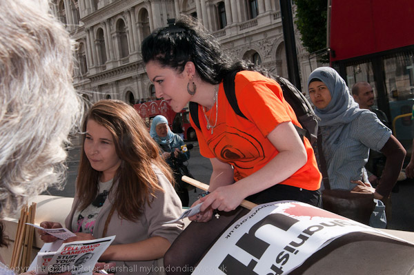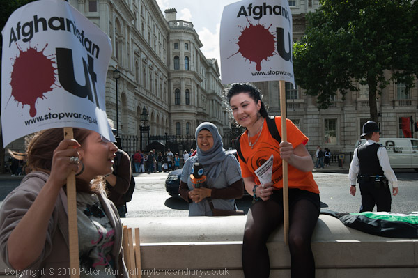 ![]() Earlier in the day the democracy campers had lost their case to stay in Parliament Square ![]() ![]() The 'King and Queen of the Common People' get some legal advice ![]() ![]() ![]() ![]() The demonstration by Stop the War against the war in Afghanistan was starting opposite Downing St |