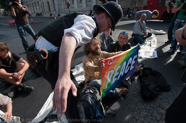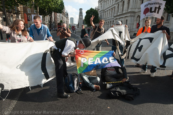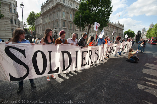 Bring Troops Home Demo Halts TrafficWhitehall, London. Friday 16 Jul 2010 |