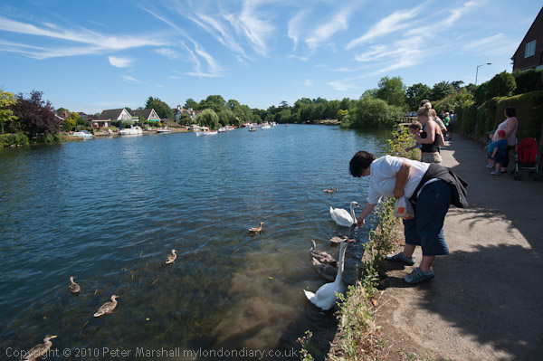 ![]() The next swan family was waiting at Old WIndsor, kept to the bank by feeding with bread ![]() ![]() ![]() ![]() ![]() ![]() ![]() And as usual were carefully surrounded by the uppers boats ![]() edging in closer and closer |