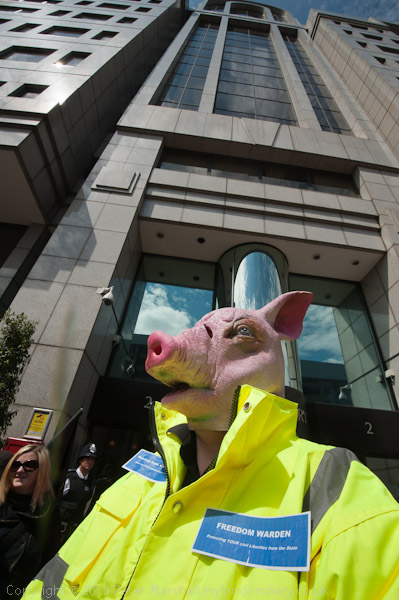 ![]() ![]() ![]() A 'Freedom Warden' with a pigs head at Rose Court ![]() |