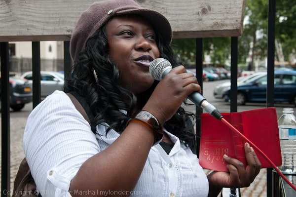 Diana Ofuri (CHristian Party/Holy Nation Church) read from the Bible and sang powerfully