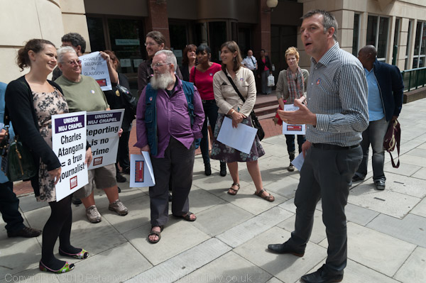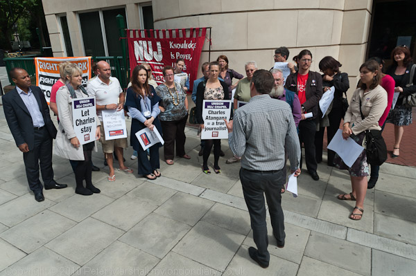 NUJ General Secretary Jeremy Dear decides he doesn't need a megaphone to talk to the picket