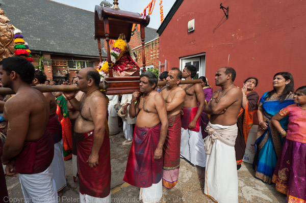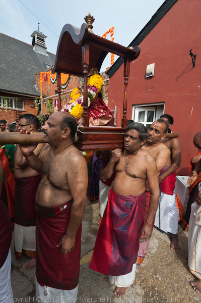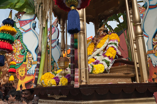 ![]() ![]() ![]() Three deities were carried in the procession - I think this is Sri Durga (Parvati) ![]() And in the palanquin is Sri Gayatri ![]() ![]() |