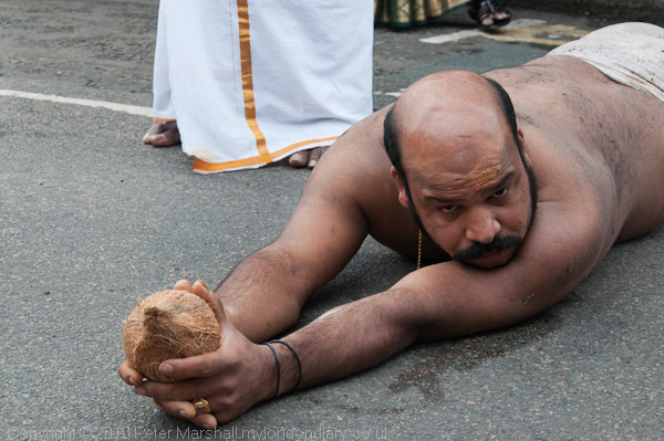 ![]() ![]() ![]() ![]() ![]() Men roll along the street holding coconuts |
