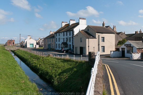 Main street at Allonby runs parallel with the shore, with bridges across Allonby Beck to a green