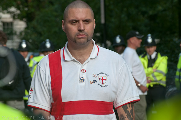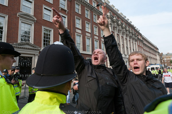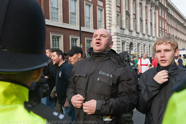 In Grosvenor Square EDL members came to shout at and threaten the press while waiting for the march
