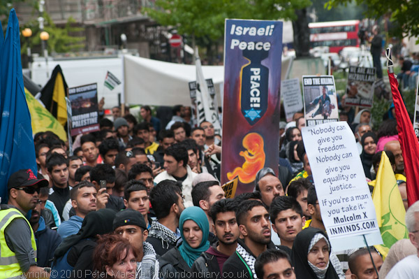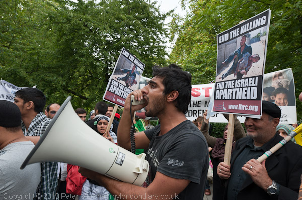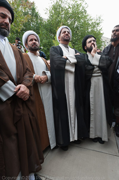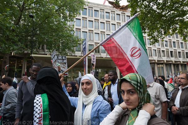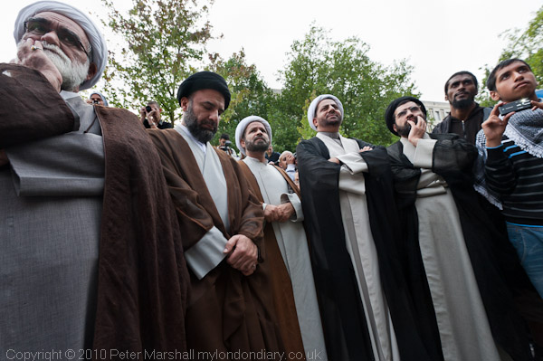 Al-Quds Day marchers assemble for a rally in front of the US Embassy, London
