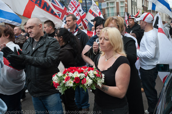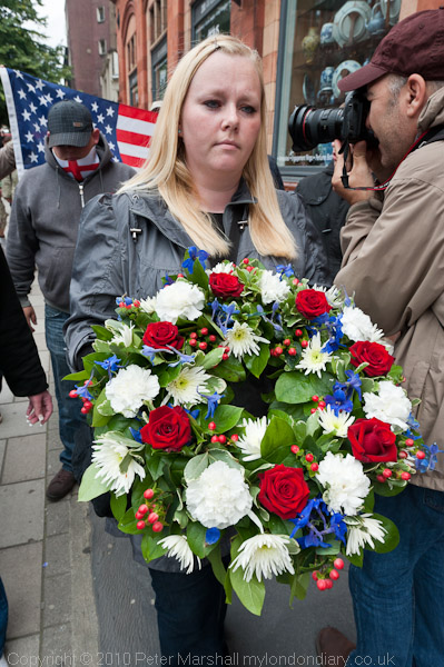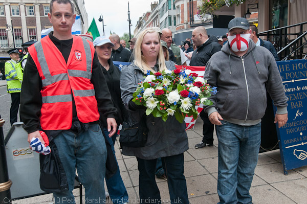 A wreath from the EDL at the head of the march as it left the Hog on the Pound