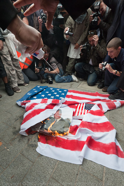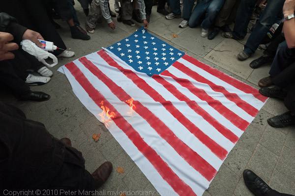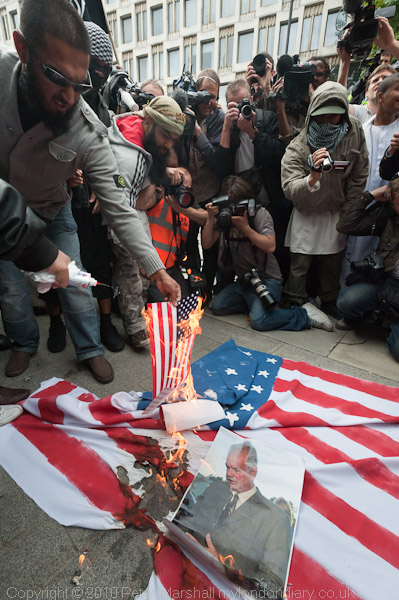 Soon someone produced a large photograph of Pastor Terry Jones and set fire to that too