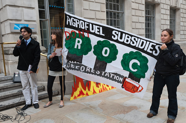 End Agrofuel SubsidiesDECC, Whitehall Place, London. Wed 15 Sept 2010 |