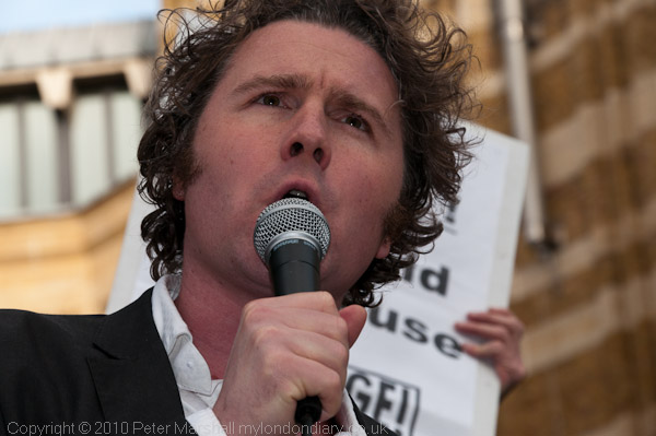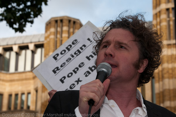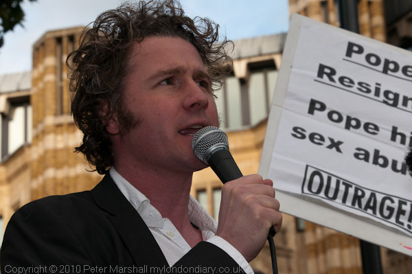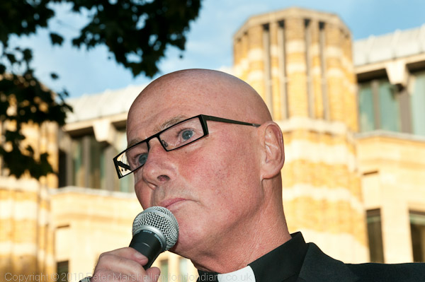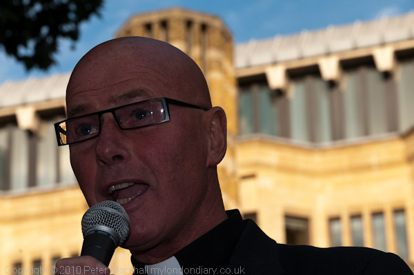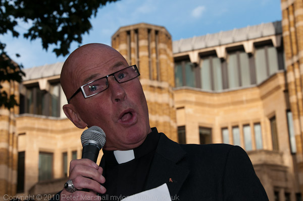 A gay Catholic priest tells the rally how the Church tried to stop his work with Aids victims