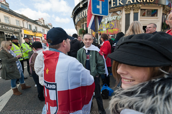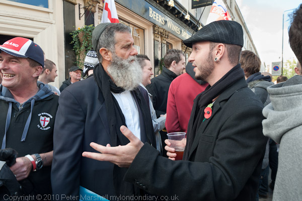 ![]() Rabbi Nachum Shifren talks with EDL members outside the pub in Gloucester Rd ![]() ![]() ![]() ![]() ![]() |