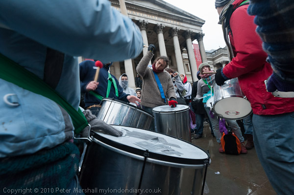 The marchers have arrived back in Trafalgar Square, joining with the others still there