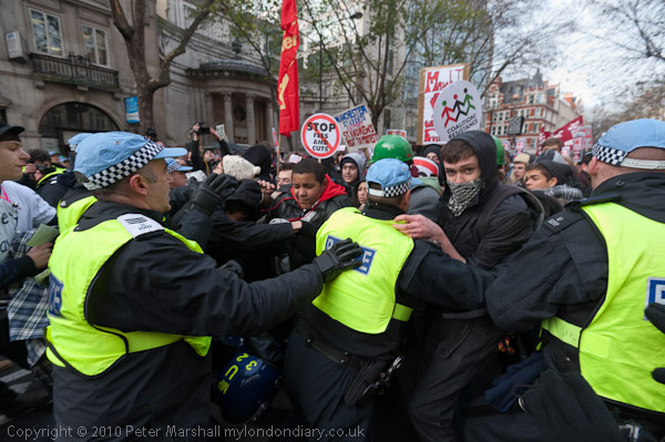 Other than briefly in Kingsway I saw no attempt by police to stop the marchers reaching Parliament Square,